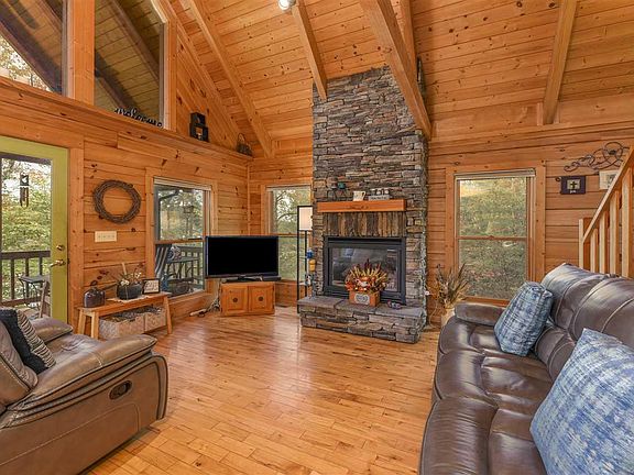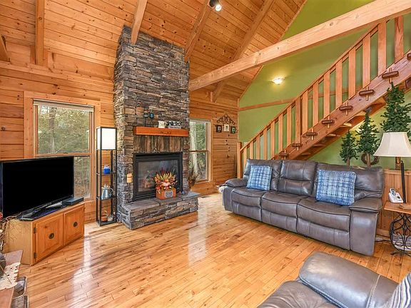 Custom built home in the highly desirable neighborhood of Wonderland Woods in Wears Valley. Two master bedrooms in a beautiful log cabin with a stacked stone fireplace, hardwood floors and stainless steel appliances. Enjoy mountain views from the large deck. There is a master bedroom on the main level, a master bedroom on the 2nd level, a loft sitting area, and a large walk out basement game room with a hot tub on the back porch. The basement also has an additional 400 sq ft that is partially finished and ready to be made into an extra sleeping area or theatre! Perfect for permanent residence/vacation home or would do great on overnight rental! Cabin comes furnished with a pool table and hot tub! Very easy access and located close to the Wears Valley entrance to the National Park, Pigeon Forge and Gatlinburg.