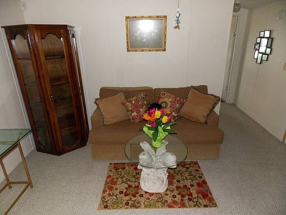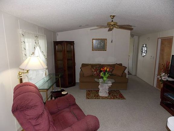Located in a lovely 55+ community in Zephyrhills. Close to shopping and restaurants. Lovely community pool with plenty of activities. Beautiful home with a secret! It has an extra bedroom and den/office (like a mother-in-law suite) in addition to the 2 bedrooms and 2 bath. This lovely home has cathedral ceilings, four ceiling fans and plenty of storage. There is a lovely screened patio, with new screens installed and large shed attached with a nice workbench. The open floor plan makes this home very comfortable and it is also Move In Ready! All furniture, appliances, pots and pans, coffee makers, linens and more included in the purchase of this immaculate home. New recliner and Queen size sofa bed in living room. Air conditioner is only three years old and so is the roof. Another bonus to this home is that it has an alarm system. You can't beat the price either for all the amenities and plus factors involved. It is also priced lower than most of the two bedrooms in the park and it has more character. Call to set an appointment, you won't be disappointed.