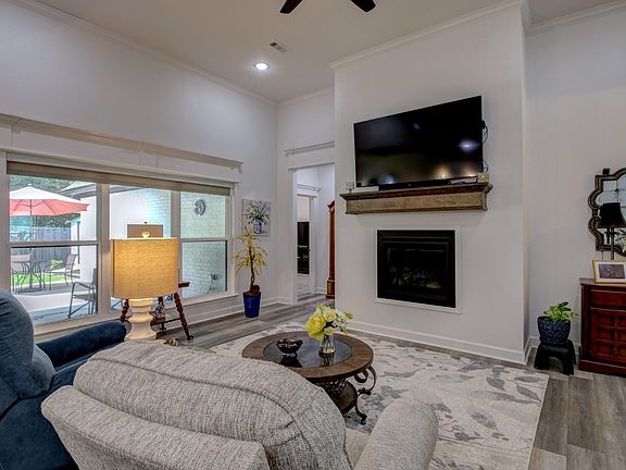Beautiful soft contemporary Patio Home in GATED SUBDIVISION. Large Kitchen, with large walk in PANTRY WITH LOTS OF SHELVING. Dining, Living Area with GAS LOG Fire Place. Upgrades include Top-of-the-line GRANITE COUNTER TOPS, ALL WOOD CABINETS, lots of STACKED WOODWORK throughout & CUSTOM TILED SHOWER IN MASTER. Wonderful fenced in patio in back for sipping your morning coffee and listening to the sounds of nature. There's also a storage building in back. Seller is giving a $3500 CARPET ALLOWANCE AT CLOSING and also leaving window treatmments, washer, dryer, refrigator, outside storage building.