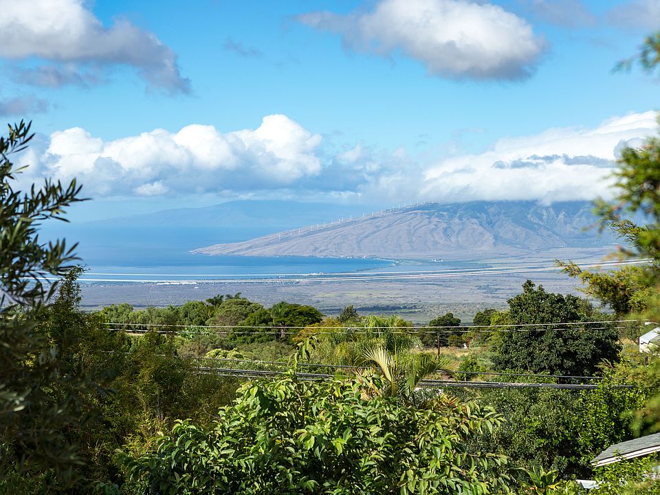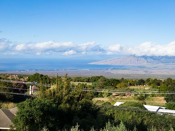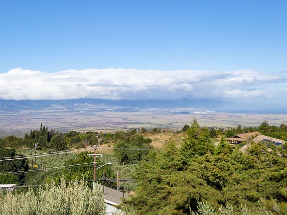 Lower Kula sophisticated home with an artful blend of glass, metal and Koa wood. Enter the manicured grounds through a private driveway lined with bamboo and embrace the natural beauty of Kula. This private location is at the top of a cul-de-sac street gently nestled in the slopes of Haleakala facing westward in the desirable neighborhood of Kamehamehanui bordering Kula Glen. The heart of the home is a light-filled great room with bi-coastal views of the ocean and the west Maui mountains. Enjoy a sunset on either one of the spacious outdoor decks or the entire ½ acre of property with a toast to the end of a spectacular day. This cleverly designed property offers the fruits of fully matured organic bananas, avocados, figs, pomegranates, mangos, guavas, clementines, tropical flowers, pineapples, and a fully producing olive orchard all well maintained. At 2,500 feet elevation, the interior features bamboo and travertine floors, modern stainless steel appliances, granite countertops, and a solid Maui koa and teak recessed wine cabinet custom built by local artisan furniture craftsman Peter Naramore from Kings Wood Gallery. The master bedroom has walk in closet built with beautiful solid bi-fold Maui koa shoji doors. The home is equipped with an energy saving solar water heater. The main bathroom boasts a spacious 4 x 6 walk in beautifully tiled shower. The cabinets are built with solid cherry wood and 3 cm Brazilian granite counter tops and Grohe fixtures with Toto toilet. Enjoy the illumination of the beautifully recessed led lighting. The windows are tinted with 3m titanium tinting to keep you cool in the summer time as you gaze to the West Maui mountains and bi- coastal views of the Pacific. During the winter months enjoy outstanding views as the sun gently dips into the pacific during the evenings' tranquil, picturesque sunsets and coastline and ocean views in this tasteful, luxurious paradise. The house and grounds have been meticulously maintained to get the most of the Upcountry Kula lifestyle. Seller will consider financing - contact your favorite Realtor for details.