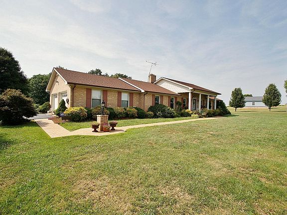 Immaculate Ranch Home with all bedrooms on the entry level. Home sets on 2.79 Acres. Full unfinished Basement could double the square footage. Crown Molding Throughout, Wood Beam Ceiling in Family Room. Chandelier in Dining Room, Huge Walk-in Shower in the Master Bath. Jacuzzi Tub in 2nd Bath. Beautiful Brick Paver Walkway Covered Front Porch and Tile Patio. Storage Shed.