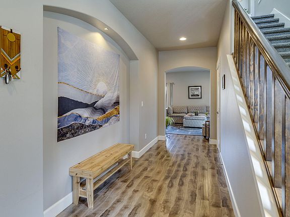 Wonderful Mirada! Summer fun in the community pool or enjoy a stroll through the neighborhood park! BONUS! The HOA takes care of your front yard! Beautifully appointed NW home offers solid surface counters, island kitchen, pantry, great room with cozy gas fireplace and upstairs you'll find a generous primary with large en suite bath and closet. Additional area perfect for computer, reading or exercise is just outside the other two bedrooms. Seller is including 1 year old washer, dryer and SS refrigerator in sale!!
