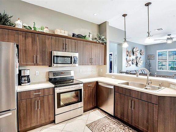 Do you like the outdoors? Then this upgraded Grand Floridian model is for you! Come and live the Naples lifestyle while enjoying a backyard BBQ on the spacious deck and stunning lake views. You could also take a dip in your resort style heated spa and pool in your private fenced in yard. This entire home has been upgraded including new roof, kitchen, bathrooms, plantation shutters, water proof vinyl flooring in bedrooms, tile throughout and pool cage! Come and see it before it is gone!