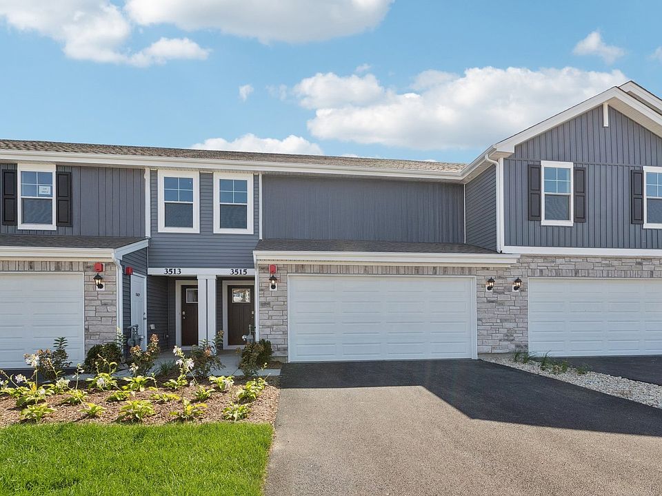 Discover yourself at 3515 Richardson Cir, Yorkville, Illinois, a beautiful new home in our Grande Reserve community. This townhome is move-in ready NOW! Homesite includes a fully sodded yard that is maintained throughout the year as well as snow removal in the winter. This home is built on a premium lot with a spacious front yard. This Tallmadge townhome plan offers over 1,665 square feet of living space with 3 bedrooms, 2.5 baths, a mudroom and a 2-car garage. As soon as you step inside, you'll be greeted by our open concept living area, featuring luxury vinyl plank throughout the main living areas. The expansive kitchen overlooks the dining and great room areas, making it the ideal space to entertain. Additionally, your kitchen features designer 36-inch cabinetry, a spacious island with quartz countertops, and pantry. Enjoy your large primary bedroom with a walk-in closet and connecting en suite bathroom. The rest of the upper level features a laundry room, secondary bedrooms with a full second bath, and linen closet. You'll find luxury vinyl plank flooring throughout the main level living space, bathrooms, and laundry. Impressive innovative ERV furnace system and a tankless water heater round out the amazing features this home has to offer! All Chicago homes include our America's Smart Home Technology, featuring a smart video doorbell, smart Honeywell thermostat, smart door lock, Deako smart light switches and more. Photos are of similar home. Actual home may vary.