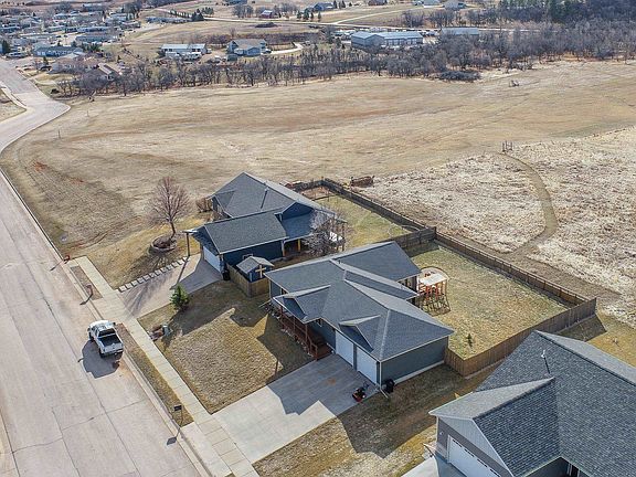 Please contact listing agent Brandon Harvey 605-920-9853 with Great Peaks Realty for more information and to schedule a showing. Great location with views that can't be beat. With over 3000 square feet, this 4 bed, 2.5 bath house has a functional layout. The main level features a primary bedroom equipped with a walk-in closet, jetted tub, tiled steam shower, and double sinks. Along side the nice sized living room is the kitchen, featuring granite counters, and dining area with views. The basement has an additional two bedrooms, 1 bathroom, laundry/utility room, additional family room, and reinforced concrete safe room.