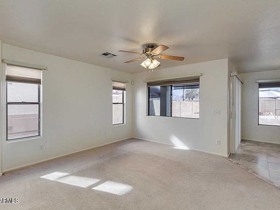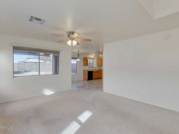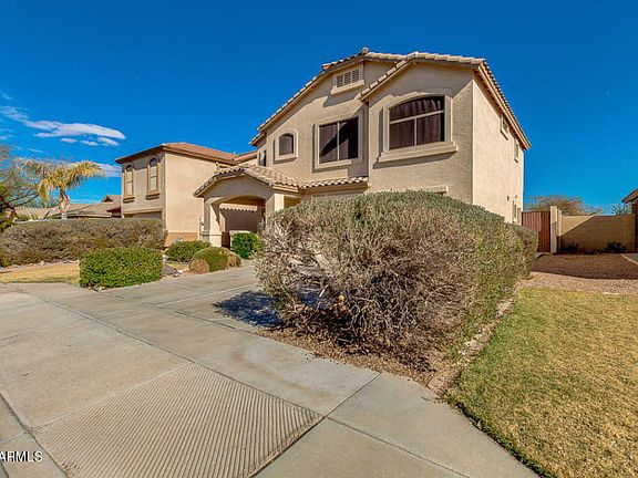 Immaculate home located in Meridian Pointe in Mesa is ready for immediate move in! This well cared for home has 3 bedrooms, 2.5 baths and plenty of space to enjoy! This popular floor plan has an eat in kitchen, (including refrigerator and new garbage disposal), and a spacious living room. Upstairs there is the large master suite, with separate shower and tub, dual sinks and walk in closet. Upstairs, there are two other bedrooms, both with brand new carpeting, and a full bath, and a loft area with an exit to the upper patio. The upper patio has magnificent views of the Superstitions. The backyard is beautiful with a grassy area, pavers and a pergola. A 2 car garage with a new water heater complete this home.