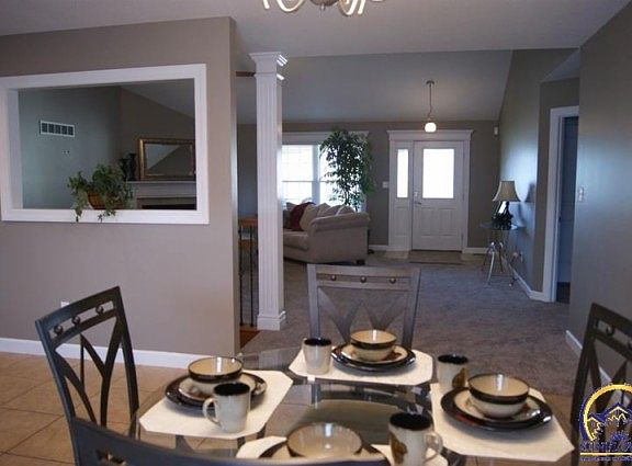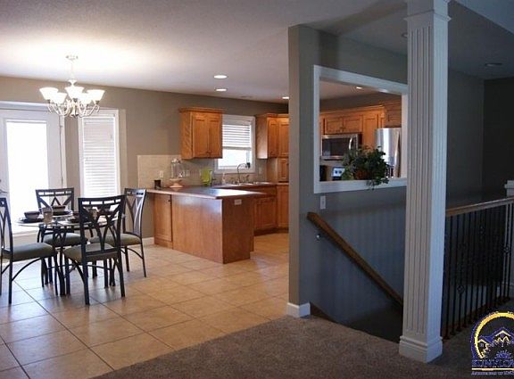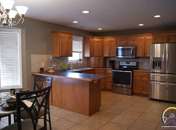 Gorgeous Shawnee Heights 4 bedroom, 3 bath ranch with awesome details: open floor plan; vaulted ceilings; crown molding; birch cabinetry from Custom Woods; a main floor master bedroom featuring a master bath with dual sinks, a corner jet tub, and beautiful counter tops. Plus a newly finished basement with bedroom, family room, great room, optional room and a full bath with walk-in tile shower. Outside there are 2 patios, and a deck inside a fenced yard. Come and see this home today!