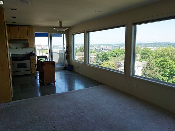 opn sat/25 12-3 SPECTACULAR VIEWS of MOUNTAINS, Willamette RIVER area and CITY LIGHTS. Beautiful updated condo with Limestone floors in the Kitchen, Sub Zero fridge. Double sinks in updated bathroom. Large Windows, very light. Built in speaker system. Amazing views from LARGE VERY PRIVATE DECK, great for entertaining. Prime Location minutes from OHSU, Downtown, Freeways and Bus. Exceptional!! Please park in space #56