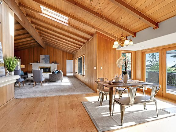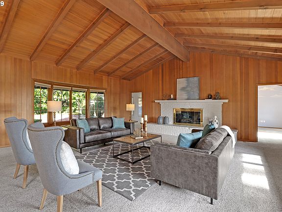 Price Reduced to $919,000. Wonderful Mid Century 1 level home w/ 4 beds + 3 baths - total 3,341 sq. ft. Stunning vaulted wood beam ceilings in LR, DR. Large kitchen w/ vaulted ceilings, island, nook & built-ins & access to deck+yard. Newer composite deck w/ sunny views to SW Hills. Fantastic neighborhood pool & sport courts. Near park & Bridlemile Elementary. Minutes to City Center & Tech Corridor. [Home Energy Score = 1. HES Report at https://rpt.greenbuildingregistry.com/hes/OR10156751]