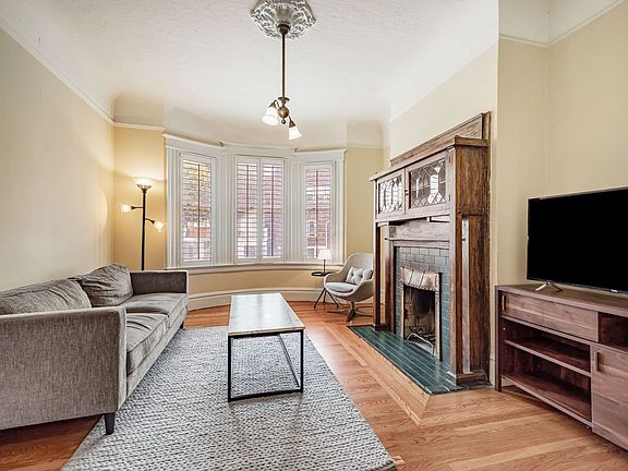 Step into this impeccably styled Edwardian Condo, thoughtfully renovated in 2018, nestled in the vibrant heart of Presidio Heights. Elegance resonates throughout this residence, boasting classic San Francisco architectural features including wainscoting, crown moldings, and vintage light fixtures. It features two charming fireplaces, one in the inviting living room and another in the sophisticated dining area (decorative purposes only).