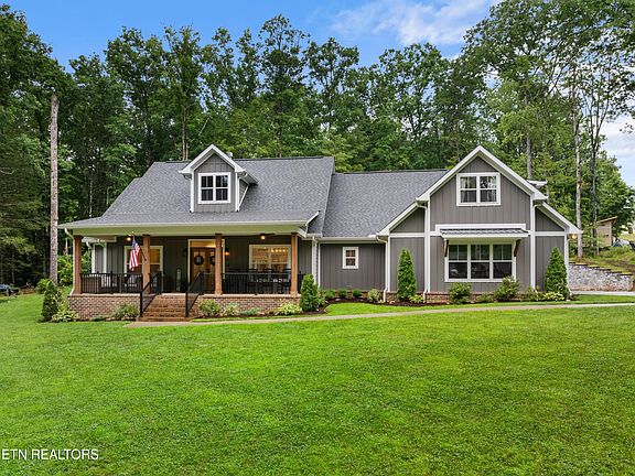 Hidden in the woods of Wears Valley, this 4 bedroom modern farmhouse-style home with bonus room is a perfect place to escape town and enjoy your private outdoor entertainment space with built-in wood-burning fireplace and patio bar on .91 acres. Create an epic meal in the chef's kitchen featuring double ovens, cast iron farmhouse sink, 36'' LP range, quartz countertops and a butler's pantry behind a mahogany barn door. Build a fire in the indoor wood-burning fireplace to create romantic ambiance on cooler evenings or enjoy with coffee on cozy, lazy mornings. Invite guests to visit! Your family and friends can stay in your three guest bedrooms and upstairs bonus room while you relax in your spa-like master bedroom and bathroom with soaking tub, walk-in shower, with walk-through closet. There is plenty of room for you and your guests to park in the two-car garage and the expansive concrete driveway. Listen to the birds and enjoy all the wildlife adjacent to Great Smoky Mountains National Park as you rock and converse on the 320 sq. ft. front porch.