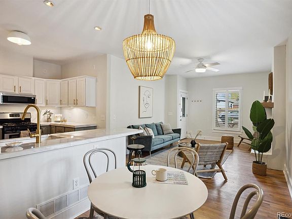 **This property is eligible for up to a $5k LENDER CREDIT! (Ask listing agent for details). This credit can go towards a rate buydown or general closings costs. ** Nestled on one of the prettiest sections in the desirable Berkeley neighborhood, this stylish half duplex with one level living epitomizes modern comfort and classic charm. As soon as you walk in, you will fall in love with this bright and comfortable home from the hardwood floors throughout to the tasteful updates to the kitchen, designer lighting, plantation shutters and cozy gas fireplace. Enjoy new bathroom flooring and recent plumbing updates, newer windows, a 4 year old sewer line and a newer tankless water heater. Bedroom number one is down a hall from the main living area offering more privacy and quiet, and bedroom number two also allows access to the back yard so makes for a great flexible space or office. This room also has a large closet, something hard to find in older homes! Step outside to your fenced yard or relax on the front and back porches for a glass of wine or morning coffee. Your yard is xeriscaped in the back with raised garden beds and beautiful aspen trees on the side of the home setting a beautiful private retreat with space for pets or entertaining. Rare to find with a half duplex, the two-car garage with electric vehicle charging provides ample parking and storage or workshop space. Immerse yourself in the vibrant Berkeley lifestyle, with trendy shops, fun dining, parks and recreation centers and cultural attractions just moments away, or cross over to Highlands neighborhood for even more to do! You will love going to Tennyson First Friday fairs or the Highlands Farmer's market right out your door. Don't miss this exceptional opportunity to experience urban but quiet living at its finest in a well loved home. Contact Porter for a viewing today and discover the unmatched appeal of this gem!
