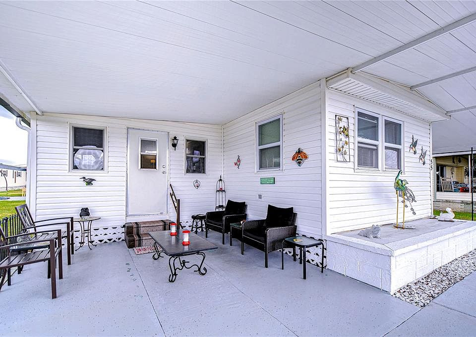 All you need to bring are your personal items and clothing. Furnished home ready to go. It can be your seasonal or year-round home. On the outside you have a furnished side screen porch plus a patio with fire pit in the rear of home for your enjoyment. The shed on the porch/carport area has the laundry area. From the side entrance enter into the updated, inviting kitchen. Newer appliances including a dishwasher. Extra countertop space plus a small eating area. Toward the rear of the home the hallway has an extra closet area. The full bath has also been updated with a walk-in shower. The rear bedroom has a wall of built-in closet area. On the other side of the kitchen, you will find the dining room which leads into the front bedroom and the half bathroom. The living room is an addition that also has the central heat and air ducted into it. Located toward the rear of the park but still near the clubhouse and pool. Park currently has evenings with entertainment at the clubhouse. Inviting senior community with a variety of planned activities. Great location for trips to Tampa, Lakeland or the beach. Call now for a chance to view this light and bright home before it is gone.