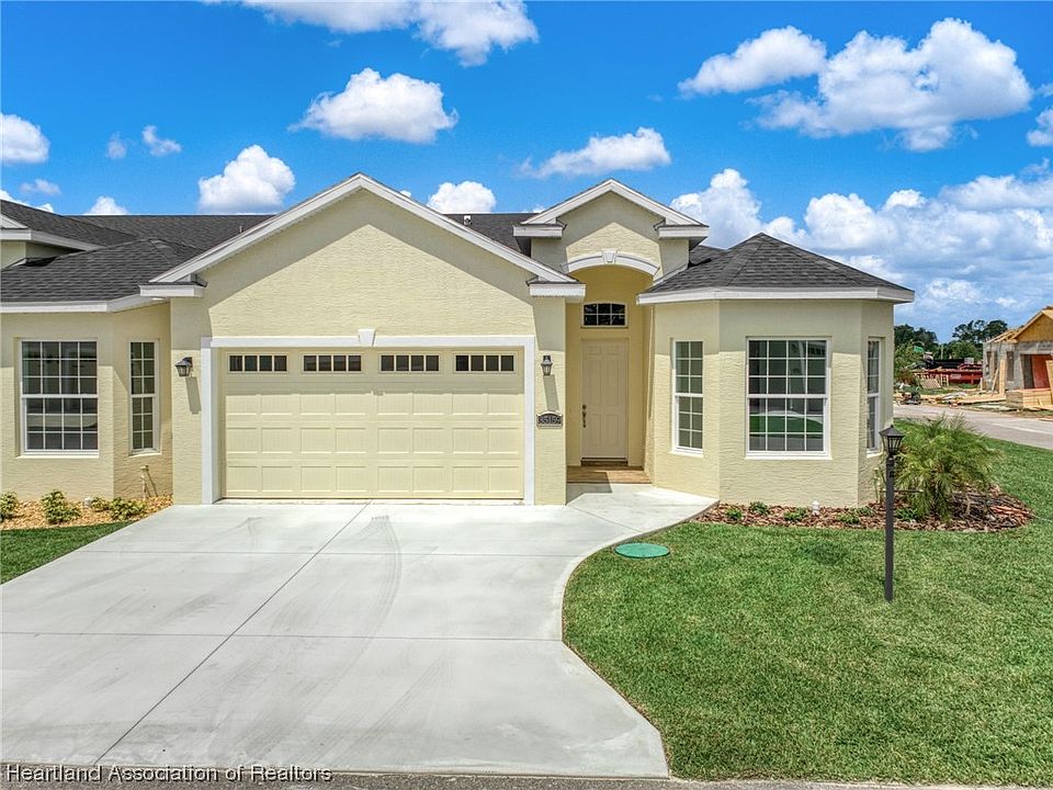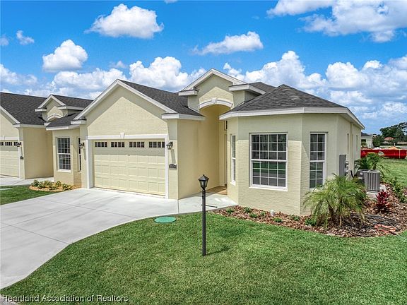 Magnolia Golf Villas is your resort-style neighborhood, with all the small-town charm. Located on seven acres in Sun N Lakes of Sebring, on Deer Run Golf Course, Magnolia Golf Villas has a lot to offer. A gorgeous "Zero Maintenance" community, perfectly maintained and groomed all year round, located just a golf cart ride away from championship golf, lakes, doctors' offices, and a community restaurant. This brand NEW Villa, The Doral Model, features three spacious bedrooms, two full bathrooms, a wide-open great room, and an oversized two-car garage. It boasts ten and twelve-foot tray ceilings, granite countertops, luxury vinyl plank floors, under cabinet lighting, and stainless steel GE appliances. All exterior maintenance is taken care of by the HOA, which makes this community perfect for those who travel. The community has fiber optic internet which runs into every home, providing speeds near 1GB, which is very rare for highlands county.