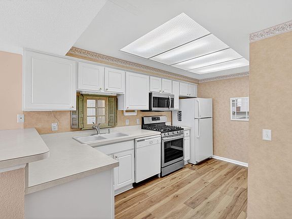 Hard to find but GREAT to have condo in Bayberry with a two car garage! Lovely two bed, two bath with newer flooring, roof and HVAC. Relax on your patio and enjoy the clubhouse with relaxing heated pool and workout area. The guest bath includes a new walk in/sit down shower for your safety and convenience. The space feels larger than it appears due to volume ceilings, large windows and open floor plan. The convenience of nearby parks, restaurants and shopping make this location ideal. Did I mention the 2 car garage?? Move in NOW!!