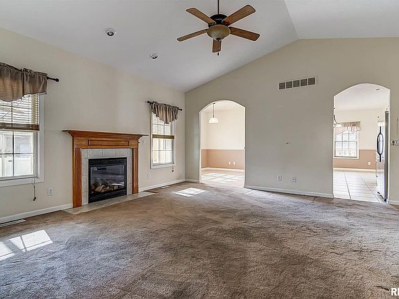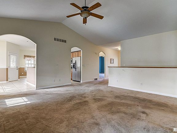 This ranch home sits in Rochester School District with a Springfield address, close to Lake Springfield. Kitchen has stainless appliances, pantry, dining area, raised breakfast bar, and breakfast nook. Vaulted living room features a gas fireplace. Two additions include a porch/mud room off the kitchen and a tiled sunroom with separate heat/cooling system. Three main floor bedrooms with a split floor plan including a HUGE main bedroom suite with vaulted ceiling, sitting area, walk in closet, bath with double vanity, separate shower and accessible bath tub. Main floor laundry with utility sink (washer and dryer stay) and deep two car garage. Wide basement steps lead to a finished family room, office area, full bath, rec room, and storage. Backyard has white vinyl privacy fence. Extra insulation added to attic. Sump pump has water backup system. Inspections are welcome, but selling AS-IS. Home is priced for cosmetic updates including paint and flooring.