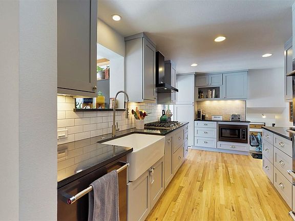 Modern meets character in this multi-level home with amazing curb appeal. Stylish new front door with sleek hardware and cool light fixtures. Original fireplace, exterior brick, built ins and gorgeous refinished hardwood floors. At the heart of the home is a spectacular fully renovated kitchen with gray soft close cabinets/drawers, stunning countertops, farm sink and high-end Kitchen Aid black stainless-steel appliances. Right through the family room, head outside to the enormous fully fenced private backyard with garden boxes and private deck. On the upper level you'll find three bedrooms and a full bath. Lower level you'll find a mud room entry, den and ¾ bath. The front yard has recently been upgraded to sod with an irrigation system. Take advantage of this 11,718 square foot lot! It is conveniently located near Trader Joes, The Streets of South Glenn and DTC. Short distance to Peabody Elementary School, parks, trails and recreation center.