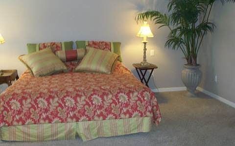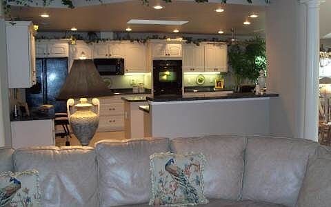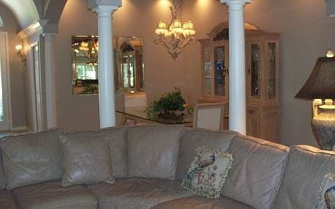 BEAUTIFUL. You will walk thru the 8ft leaded glass double doors into a large arched foyer with pillars and recessed lighting. The great room has 12ft ceilings with large crown molding. The open dining room is surrounded by pillars and a step up ceiling. You will love cooking in this island kitchen with built-in cooktop and double oven. Wonderful cabinets. Recessed lighting.The eat in area in the kitchen has a large bay window. A great master suite has a large tray ceiling opening into a large master bath with a corner vanity, double sinks and tiled counter tops. Walk in tiled shower. His and her walk in closets. Private guest suite has a large arched window.The over sized garage has room for two cars and two golf carts. Or 3 cars. Plantation shutters thru out. Lovely landscaping with paver brick sidewalks and drive. Almost everything in this home is an upgraded. All this in a great golfing community with many amenities. Broker owned.