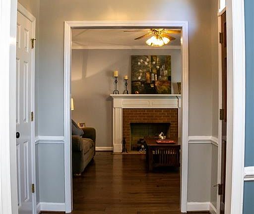 This all brick exterior home has been well maintained with updated flooring and more! Cozy Living Room features gas log fireplace and mantel. Crown molding and chair rail detailing throughout the home. Formal Dining Room leads to an eat-in kitchen with custom wood cabinetry and food pantry. Owner's Suite features private full bath with double vanity and oversized walk-in closet. All kitchen appliances remain. Rear deck overlooking private backyard area with "fish pond". Detached 12x16 Wired Storage Building remains. Convenient location within minutes to nearby shopping, schools and interstate access.