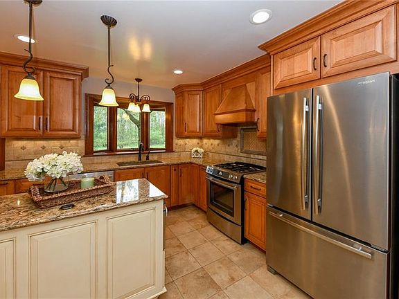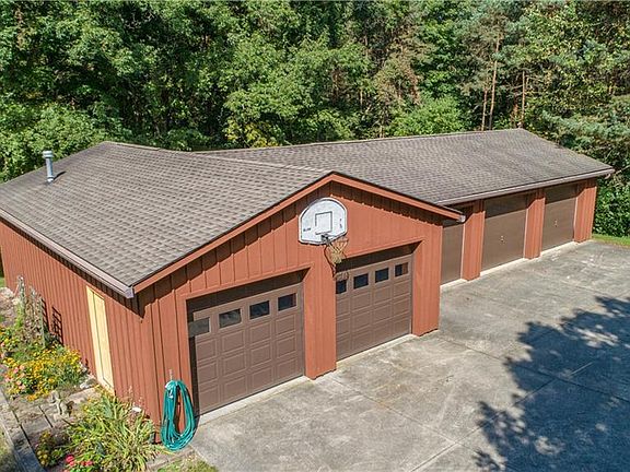 Welcome home to this fabulous custom split level home nestled on over 5+ scenic, wooded acres in Medina Tsp. This one owner property provides spacious living at its best, stocked lake, pristine landscaping, beautiful pines, flowering trees, & a huge wooded back lot.This delightful home boasts over 3200 finished square ft & shows pride of ownership throughout! The entry presents a two story foyer & laundry room, mud room & full bath, all with heated floors. The main floor features an open living & dining room area, with an abundance of windows, brick walled gas fireplace & recessed lights adding to the warmth of this room. Inviting composite deck off the sliders allowing gorgeous views of the lovely landscape & lake. Recently remodeled kitchen is a gourmet's delight w/ island, Jenn air appliances, maple cabinets, quartz countertops, tile backsplash. Three nice sized bedrooms & 2 full baths on this level. Finished lower level is complemented with heated floors & presents garden windows in most rooms. There is a full bath, bedroom, workshop, sewing room & office which both could be bedrooms as well. This level is complemented with a family room with wood burning insert, a kitchen & walk out paver patio. In addition to the 2 car attached garage, & desirable for many, is the 24x36 ft 2 car heated shop with electric & attached 30x40 ft 3 car cold storage building. A Home warranty. Convenient to major highways, and shopping. " See detailed walk through video on U-tube"