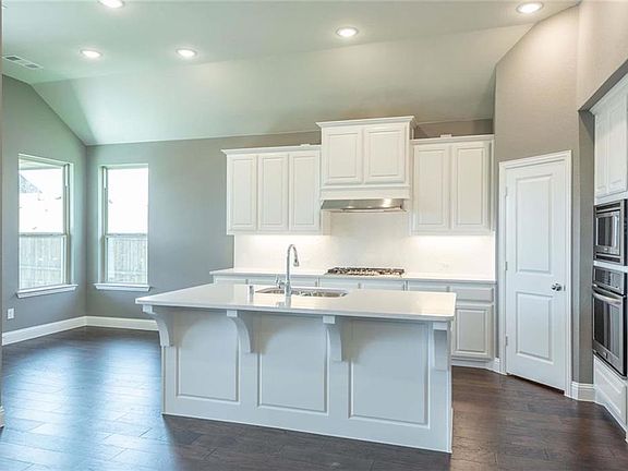 MLS# 13822912 - Built by Highland Homes - Ready Now! ~ FACE GREENSPACE! Wht Kit Cab-Blanco Lv2 Quartz isl; Bltin potpans, SS appls, 5 burn CT; undercab lights; Ext Kit Cab; Upg BS; gooseneck; Gas stn raise hrth FP; Woods-Entry-Fr-Dr-Halls-KitNook; Lvl2 crpt; Upg Mstr Bth Dropin soaker, marble shwr flr; custom ptd KitNook, Mstr Bth, Pdwr, preplumb util sink; Future water softener loop; Prewire 5 cameras; Mstr BR-FR Flt Scrn Rdy; Ext Flood; Rocker Switches; Ext Holiday Plgs; 2 Coach Lights; Insulation betw FR-Master BR; Lvl 2 Carpet; Uplights! 8'mahog dr! 16Seer Trane; Tankless; WiFi Therm; Merv 10 fltr; Enhance Amenity: Pool#2, Spray Prk, Sand Volley+Covered Lit Basketball Soccer-Playground.