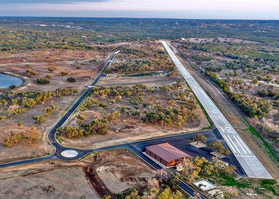 Welcome to a truly rare opportunity in Central Texas: a private airpark community set against the stunning backdrop of the Hill Country. This exclusive neighborhood offers a lifestyle unlike any other, built around a 4,700-foot concrete runway equipped with lighting. Designed for maximum flexibility, the runway accommodates everything from light aircraft to high-performance jets, with direct taxi access to your personal hangar or the expansive 80’ x 100’ community hangar. Lot sizes range from 1.5 acres up to 37 acres, providing generous space for custom homes, hangars, and outdoor living. The entire neighborhood features aircraft-friendly ribbon curb asphalt roads, allowing you to taxi straight to your doorstep. A spring-fed creek winds through the property, complemented by a tranquil 1.5-acre lake ideal for fishing, kayaking, or enjoying evenings by the fire pit. Enjoy over two miles of scenic running trails and a peaceful creekside gathering area. The fully equipped community hangar includes guest aircraft parking, a lounge, conference room, fitness area, and an on-site flight instructor. AV gas and jet fuel are available on-site. Entry to the neighborhood is private and secure, featuring a charming covered bridge and gated access. Annual dues include concierge and security services, landscaping, common area maintenance, and runway upkeep—ensuring a worry-free, aviation-centered lifestyle. This is more than a place to live—it’s a destination for those who live to fly.