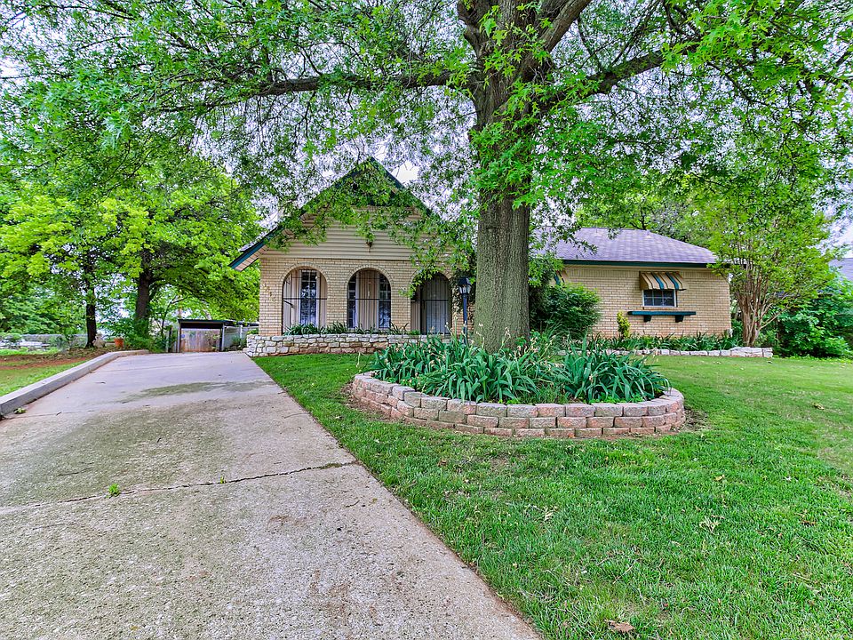 Beautiful 3 bedroom, 2 bath home with a 2 car garage on a quiet cul de sac! Additional BONUS sunroom perfect for a home gym, office, play room, or second living space! Living room has a beautiful brick fireplace, wood flooring, and a full wall of built-in bookshelves. The kitchen features granite countertops, modern backsplash design, stainless steel appliances, and a breakfast bar. En suite master bathroom with a walk in shower. There is an additional hobby room with a large work table and storage. Washer and (gas or electric option) dryer connections. Other features include sunlights to let in natural light, plenty of closet space, and handicap accessible. Large fenced in backyard with a huge covered patio, one of a kind garden design with a variety of flowers and trees, and a 340 sq ft workshop! Oklahoma City School District. Rent is $1225 per month and deposit is $1225. Tenant is responsible for utilities and yard maintenance. Pets welcome. To schedule a showing and apply online, visit integrityokc.com.