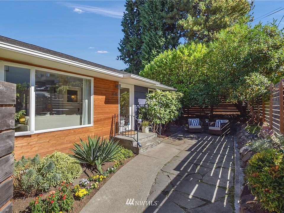 Quintessential mid-century home with vintage charm and modern elegance in the lively Fauntleroy neighborhood of West Seattle. Enter into the main floor that flows into the living space with cozy wood stove and original hardwood floors. Updated kitchen with Liebherr SS fridge, built-in open shelving, and quartz countertops is well appointed. Spacious downstairs 3rd room/rec room space and adjoining updated 3/4 bathroom makes this versatile layout perfect. From the upper deck off the kitchen to the lower custom built patio, there is no lack of beautiful outdoor entertaining options. Detached 1 car garage with enough room for your next project or storage needs. All this is a short walk to local shops, restaurants, waterfront parks and more!