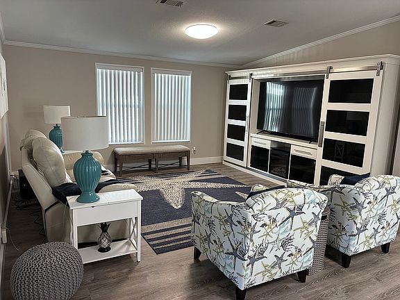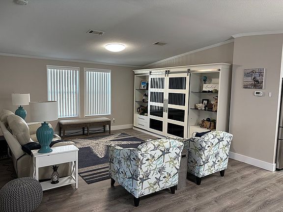 Completely renovated 2005 Palm Harbor, New roof with 25 year hurricane shingles 2020, New HVAC 2021, New windows and French door 2024, New water heater 2024, New 10x16 back deck 2024, New Kitchen and reconfiguration, all Samsung appliances, new exotic granite counter tops, new backsplash, under-mount sink, small island with matching granite, new waterproof flooring throughout, New Master bedroom / bath reconfiguration 2023, fresh paint throughout to include ceilings, updated 6inch baseboard trim throughout and new light fixtures. Home is located in Veranda Springs lot rent is $657 per month Furnishings are negotiable