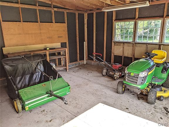 This affordable house is convenient to Trumansburg and Ithaca with many amenities. Single level, ranch style living with 2 bedrooms, a spacious sunroom with energy efficient windows, paved drive with a 2 story garage and a full basement. Walking distance to the convenience store but a rural feel on this spacious, half-acre lot with a stream in back. Located on the main road so it gets plowed regularly.