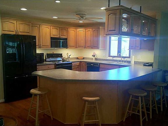 Outstanding home in quiet Cul-de-Sac location! Newer maple kitchen cabinets, flooring & counters! Breakfast bar seating for 6 plus area for dining table! Newer wood floors in LR, KI, DR & hall. Wonderful enclosed porch with small deck attached! Updated main bath with 3 large bedrooms, master bath has also been updated including a whirlpool tub! Lower level features a finished family room with large daylight windows, wood burning fireplace, spotless laundry with wash sink, large 4th bedroom that walks out to a patio and an updated 3/4 bath with tiled shower! Newer windows, siding, roof, furnace & AC! Large two car garage plus attached heated shop behind garage with access to back deck. Beautifully maintained, all you need to do is move in and relax!