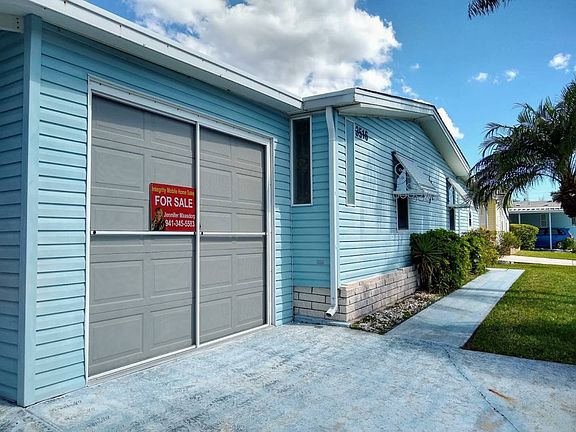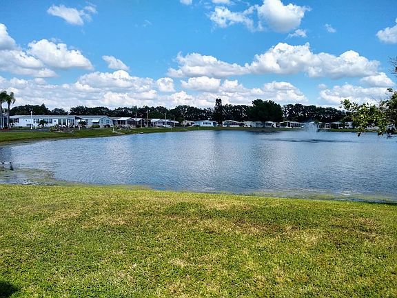 Lots of Outdoor Florida living space attached to this spacious 1568 SF home with a magnificent Lake View! PLUS a Garage and Lanai that's almost 900 SF, Carport can accommodate 3 cars! Situated on a corner lot... many upgrades include gorgeous laminate flooring and tile! Partially furnished and turnkey. If you love to cook this large eat in kitchen has newer cabinets and custom island with lots of storage that's movable! Immaculate Florida home has nice size Dining room Family room and Living room all with lake views! Indoor laundry has 1 year old washer and dryer! Good size guest bath and bedroom, Grand Master Suite accommodates a king-size bed easily and has a walk-in closet, en suite has dual sinks and separate shower. This house needs to be seen to really be appreciated! Lifetime roof over, 3 yr old A/C. Located in Parrish Florida is 55 + Community is pet friendly (2 dogs under 25 lbs allowed) cats welcome too! Lot rent includes lawn mowing and trimming, all Park amenities.... swimming pool on a Lake with pretty fountain, saunas, tennis, shuffleboard and the newly updated Clubhouse hosts many activities and events! Look no further for your affordable Large slice of Paradise! Lot Rent: $574/Month.