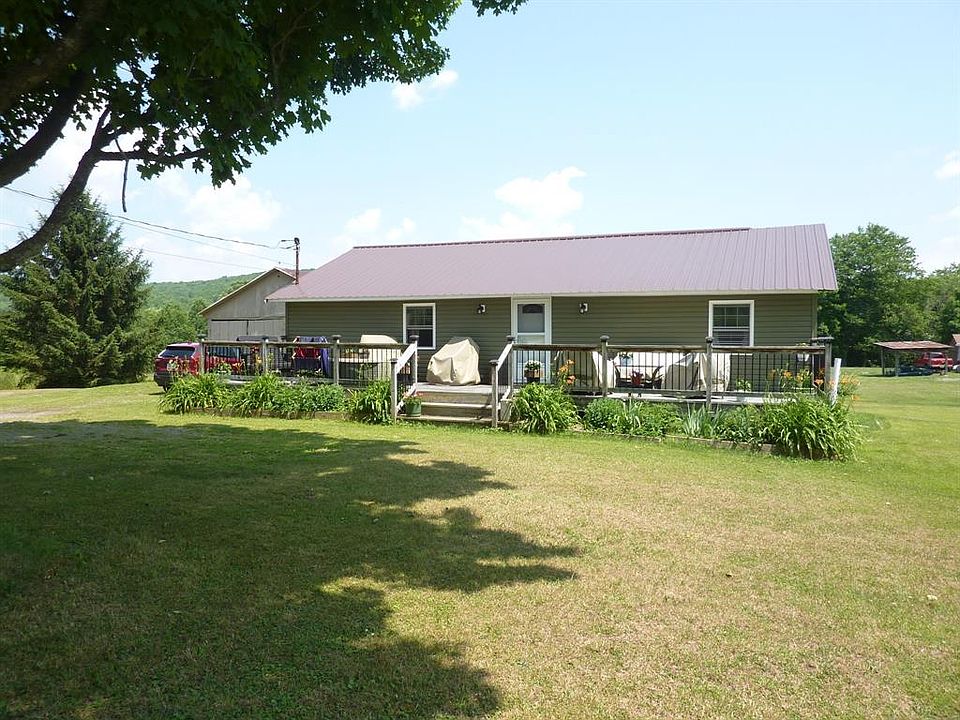 Must see absolutely mint condition open floorplan ranch on 60+ Acres!! Totally renovated inside and out down to the studs 5 years ago. Beautiful kitchen with big island and stainless appliances. Roomy dining room with adjacent living room is perfect for entertaining. Front deck runs the length of the home and is a perfect place to enjoy the views! Master bedroom has a small unfinished room that could be finished as 1/2 bath or 2nd closet. Beautiful bamboo floors throughout.1st floor laundry in bath with tiled floor and tiled bath surround. 36' x 26' barn/garage. House is set on 2.4 acres with 2 additional adjoining parcels of 43.3 acre and 14.6 acre. Minutes to Newark Valley.