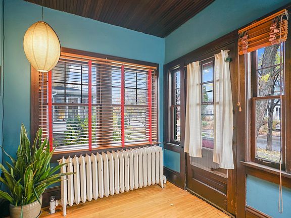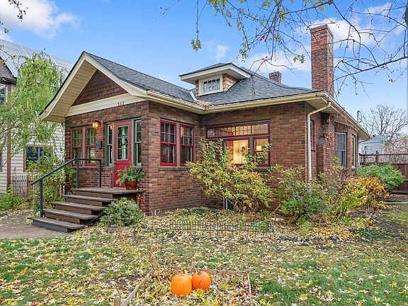 Here we go! Welcome to this 2-bedroom, 1913 year-built bungalow, loaded with artistic flair and modern updates! This unique home showcases the craftsmanship of both a skilled woodworker and experience metal worker, with its customs details and artful finishes. Through the heated front porch, step into a cozy living room where historic charm meets thoughtful artistry, with original hardwood floors, fireplace and handcrafted fixtures all which lend to the home's warmth and character. The flow takes you to the large dining room that can handle nice size holiday dinners. The updated kitchen features modern cabinets and appliances that blend seamlessly with the bungalow period details. The full bath has been beautifully renovated with a contemporary style, while honoring the home's vintage feel. The unfinished basement has a 9-foot (yes, 9ft) ceiling height and would be a great place to add immediate equity! Outside, enjoy a private backyard, perfect for relaxing or out outdoor projects. This home is truly one of kind, tailored for anyone who values quality, creativity, and the character of early 20th century design.