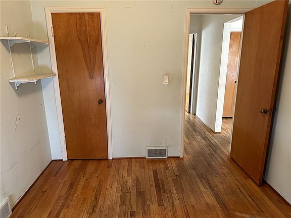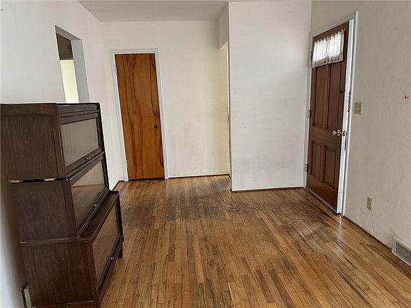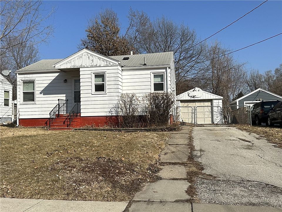 So much potential in this property. It does need some TLC but has excellent potential to be a charming home with 2 bedrooms, 1 bath and a 1 car detached garage. Newer windows. HVAC and water heater are approximately 5 years old. Original hardwood floors are in good condition however they are worn and need refinished. Galley kitchen with small eating area. Kitchen has laminate floor. Some plaster damage from a roof leak a few years ago. Shingles were replaced and doesn’t currently leak. One foundation wall has anchored walls but needs maintenance. The adjacent wall may need anchors or braces. Metal siding needs painted. Garage has some siding issues, and the asphalt has heaved a bit on the floor. Large fenced in yard. Located in a great neighborhood which offers easy access to local shopping, restaurants, and public transportation. Property is being sold in AS IS condition and is priced accordingly.