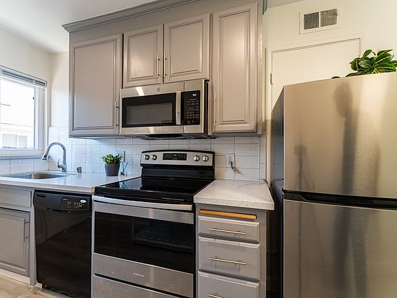 New wood flooringKitchen with granite countertopPlenty of street parkingCentral heatIn unit laundryEasy to clean cooktopPortable ac