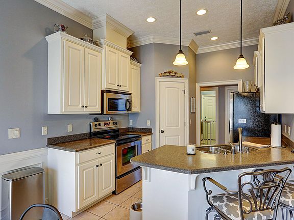 - Interior: Fireplace-Electric, Ceiling Crwn Molding, Lighting Recessed, Floor Tile, Pantry, Breakfast Bar, Ceiling Tray/Cofferd