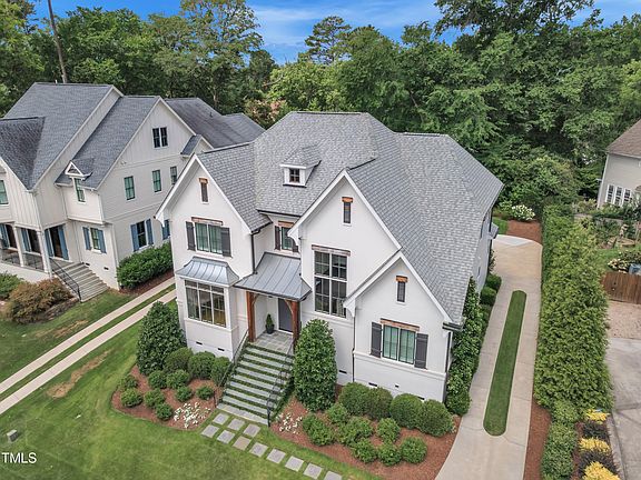 Immaculate Condition! Nestled Inside the Beltline, this home offers the perfect location, just a short walk to North Hills and the Raleigh Greenway. Built in 2017 by the award winning DJF Builders, this residence showcases exquisite details and a versatile floorplan, featuring a first-floor primary suite and three additional bedrooms, each with its own en-suite bathroom. The interior boasts stunning craftsmanship, including beautiful trim work, designer lighting and wallpaper, cathedral and coffered ceilings, a shiplap breakfast room, and a grand foyer adorned with wainscoting. The exterior is equally impressive with extensive landscaping, an irrigation system, and landscape lighting. The timeless elevation, floor plan, and interior finishes make this home an exceptional fit for any discerning buyer.