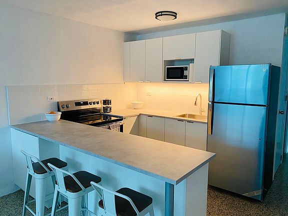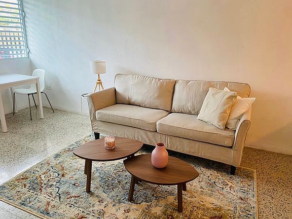 Completely remodeled and equipped unit in a safe neighborhood. Brand new kitchen with GE appliances, 3 new AC split units, remodeled bathroom, full size washer and dryer, one covered parking space, and street parking. It is located in Extension Santa Teresita, very close to San Lucas Hospital and 12 minutes to PHSU. The apartment is partially furnished and is part of a duplex, the other apartment is currently rented to a student. There is a small backyard ( maintenance included) and a park across the street. Long term lease.