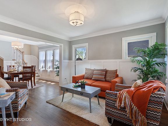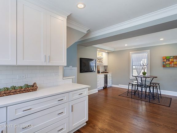 This lovely home has been completely restored with careful attention to every detail. Living room and formal dining room with wainscoting leads to a new dream kitchen with today's modern trends & colors, stainless appliances and tasteful granite & back splash. This adjoins a eating area with a wet bar and family room with sliding doors to deck over looking backyard. Main floor bedroom and full bath complete the first floor. Hardwood floors through out the first floor. The second floor boasts two large bedrooms, shared bath with double sink and separate shower. The walk out basement has finished rec room, laundry with new washer & dryer and new drain tiles. All new - roof, windows, doors, electric, plumbing, drain tiles, sump pump and furnace & central air plus kitchen & baths. Like a brand new home this is a must see!! Easy walk to Schools, Metra, Restaurants, Shopping.