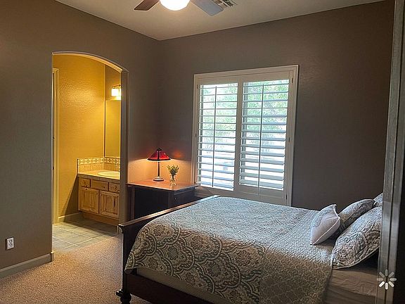 Monterey built home with 2x6 construction in gated community. Upgrades throughout including solid doors, all hardwood cabinets, office with two desks and built-in cabinets, new lighting and fans, wood shutters, water softener system, great room/nook/kitchen open floor plan, large master bedroom/bath/closet, split floor plan with three bedrooms on west wing and two bathrooms, two 2-car garages, huge 8 car driveway with side concrete pad, RV gate with concrete pad, resort style backyard ($150,000) with huge diving pool with natural stone waterfall and slide, gazebo, fireplace, covered patio, 10x20 garden shed, 15x20 man cave with attached tool shed, home recently painted inside and out, quiet safe neighborhood located on desirable Val Vista Corridor.