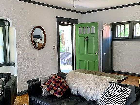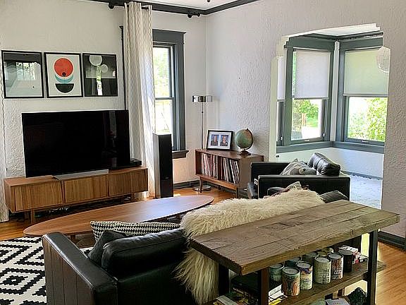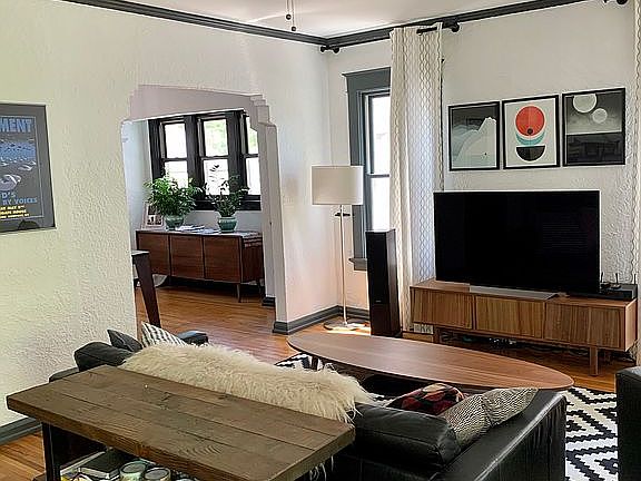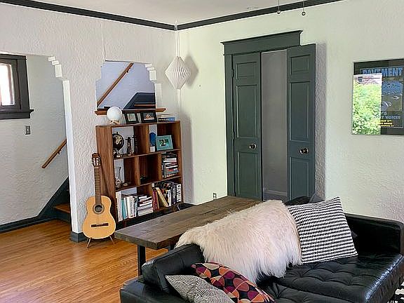 Vintage charm and modern style Stainless steel appliances, white tile backsplash, white cupboards, gray floors and chalk wall in trendy new kitchen. Upstairs sunroom is perfect private work from home space Remodeled bath with white tile tub surround. Sunny room off kitchen for breakfast nook or mudroom. Hardwood floors and built-ins add to character. Front porch and newer deck offer outdoor living. Open, modern living with the charming front sitting room that flows into living room and dining room. Mechanical updates, Pella replacement windows and newer roof. River Road Park at end of block.
