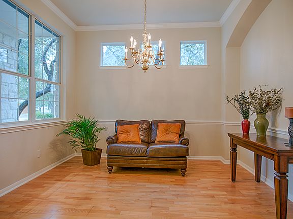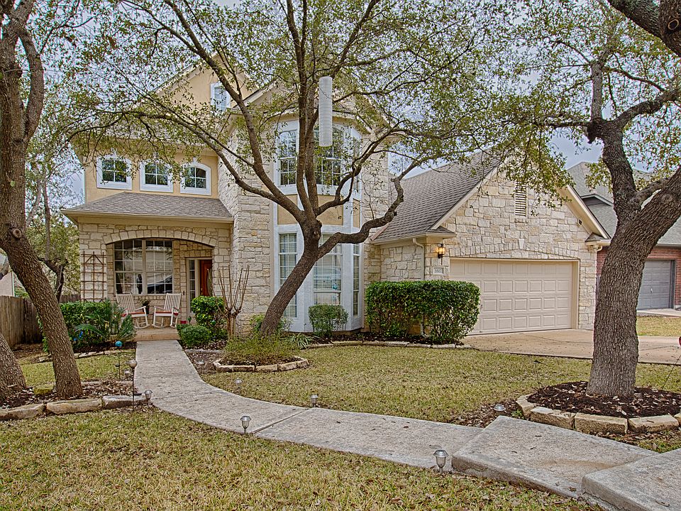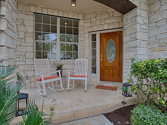 This beautiful white limestone with the prefect front porch is located in Steiner Ranch. Live oaks shade the home from the Texas sun and allows you to enjoy sipping tea year round. Home has been newly painted and carpet has been replaced. 4 bedroom, 4 bath, formal dining, office, and game room. Kitchen has solid maple cabinets, Bosch appliances and Rinnai tankless hot water heaters. The backyard provides privacy and is perfectly manicured. Home is within walking distance of the park and community pool.