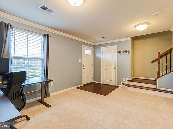 Rarely available four level townhome with an attached garage. Some fresh paint. Luxury Vinyl Plank on entertainment level. Newer carpet on main level. Rec Room on main level that could also be used as an office. Gourmet kitchen on 2nd level with cherry cabinets, granite counters, tile backsplash and stainless steel appliances. Kitchen has a eat-in area and opens to a lovely family room area. Third level has a primary bedroom suite with walk-in closet and full bath. Two other bedrooms on this level share a hall bath. Fourth level is another full sitting area/2nd office/possible bedroom with a full bath plus a walk out balcony area. Really stunning!! Desirable commuter location that is close to shopping, library, and so much more. Hurry!!