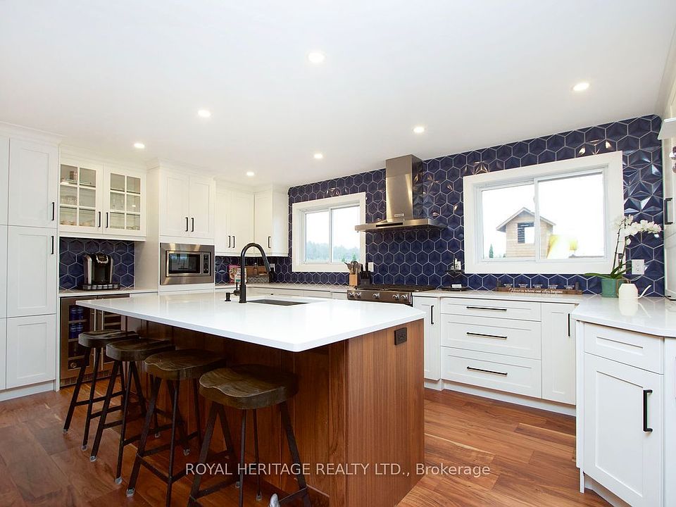 Step into this fully updated bungalow where modern comfort meets peaceful country living. The bright, open-concept main floor welcomes you with sun-filled living and dining spaces, all tied together by new hardwood flooring. The chef's kitchen is the heart of the home, featuring an oversized island, abundant quartz counter space, and generous storage - perfect for everyday living and entertaining.The spacious primary suite offers a relaxing retreat with a stylish feature wall and custom closets in two of the three bedrooms. A beautifully renovated 4-piece bathroom completes the main floor.The lower level expands your living space with a warm and inviting great room, complete with a propane fireplace and built-in surround sound. You'll also find a dedicated laundry room and plenty of storage. A major bonus is the separate in-law suite, complete with its own entrance, laundry hook-up, brand-new 3-piece bathroom, and flexible bachelor layout. Create a private suite, ideal for extended family, guests, or rental potential. Outside, enjoy the best of country living on a private lot featuring a custom play area, in-ground trampoline, and a powered 12x24 shed. The attached two-car garage is fully insulated and ready for year-round use. A rare opportunity to enjoy country living just minutes from every amenity, including easy access to the 115, 401 and 407, giving you the perfect blend of convenience and tranquility. With countless updates - roof (2019), 200-amp service (2019), furnace (2021), hot water tank (2018), kitchen (2021), upstairs bath (2021), lower-level fireplace (2023), and lower-level bath (2025) - this home offers turnkey peace of mind for years to come.