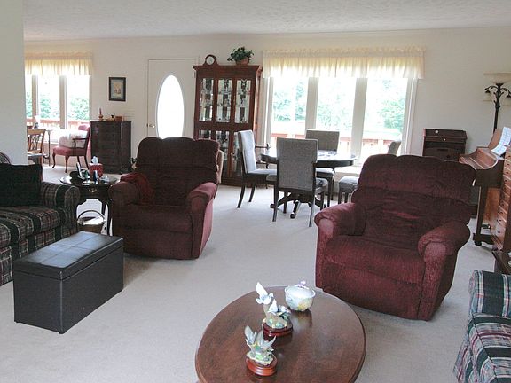 Meticulously maintained brick ranch on 3.3 acres of river front property. The 1841 sq.ft. Home offers an open kitchen, great room, 3 bedrooms and 2 baths on the main floor with an additional full bath in the basement. The 1000 sq.ft. walkout basement has been sheet rocked but not finished. There is a large storage room aw well as a separate 12x26 workshop with 4 ft. wide exterior door. Park your cars in the roomy 26x24, immaculately kept 2-car garage. Enjoy many quiet, peaceful hours relaxing on the 12x26 screened-in porch that overlooks the scenic landscape and river. Be sure to keep a pair of binoculars handy for viewing the vast array of wildlife. Walk down the paved driveway ro your own access to great fishing, canoeing and other river activities.