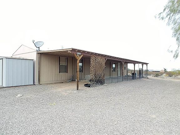 PRIVACY and a view that stretches for miles. Open living and eat in kitchen plus breakfast bar. Split bedroom arrangement with master bedroom, private bath and walk in closet. Second bedroom and bath. Central A/C. All appliances remain. Covered patio facing west for watching beautiful sunsets. Covered entry and carport. Fenced for horses and small shed for tack. Watering system maintains shade trees and natural landscaping.