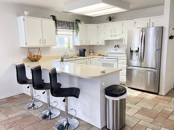 Beautiful, spacious, freshly painted 3 bedroom, 2 bathroom 2 car garage single family home. Featuring a modern and spacious recently updated kitchen with stainless steel appliances and a large pantry perfect for food storage. Master bedroom has an on suite bathroom with a beautifully remodeled shower and huge walk-in closet. This home has a charming wood burning fireplace in a large open floor plan living room. Includes a fully landscaped and fenced in backyard and side yard. The 2 car garage has shelves for easy storage. RV parking available. Home comes with washer & dryer. Home is centrally located in the heart of Prescott Valley within 3 minutes to the Civic Center, YRMC (East Campus) hospital, Walmart, Frys, elementary, middle & high schools, and the Entertainment District (that includes movie theatre, restaurants, and shopping). Super clean & ready for move in March 1st, 2022. $2700 per month, utilities not included. Tenant pays all utilities. No pets. No smoking. Furniture pictured is NOT included. Month to month, or long term leases are available. For questions please contact manager: Diane
