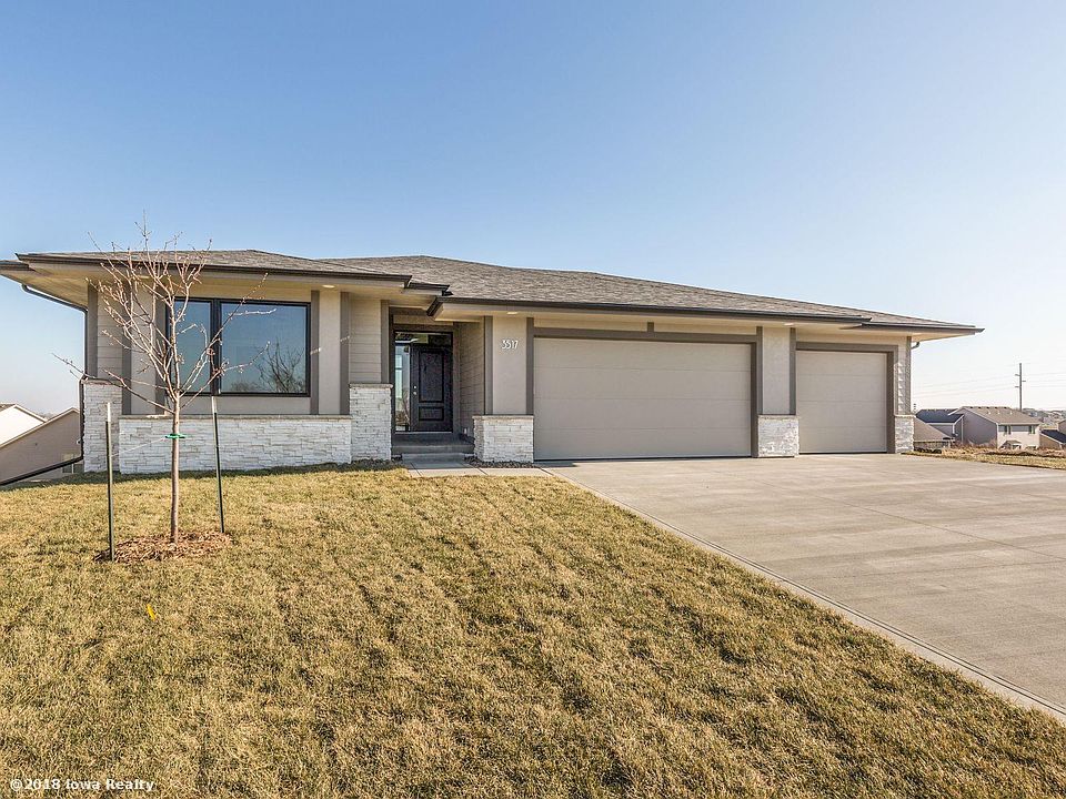 Start the NEW Year off in this stunning NEW recently completed Genesis Homes Transitional Walkout Ranch. This Move-In Ready home is loaded with in demand features Enjoy the generous Kitchen with plentiful white cabinetry, large island, and walk-in butler style pantry. The Open Concept Area also features a floor to ceiling tile fireplace area, hardwood floors, quartz countertops, modern lighting and backsplash, and lots of windows. The Mstr Bdrm and Mstr Bath walk-in tile shower are accessible from the Main Level Laundry Room through the large Mstr Closet. One additional Bdrm, Full Bath, and Pocket Office area complete the Main Level. The Lower Level delivers 2 additional BDRM'S, 1 Full Bath, and Family Room with Wet Bar. Located in Clive's NEW Chayse Landing Community, in the Waukee School District.