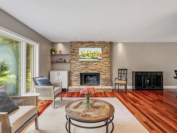 This 4-bed, 2.5-bath home offers 2,508 sq ft of “no curtains needed” living. The living room has wood floors and a fireplace for quiet evenings. The kitchen features custom cabinetry and solid counters, ideal for anyone who loves a stylish space. Upstairs, the master bath has heated floors and an updated deck for peaceful stargazing. Three more bedrooms and a full bath complete the upper level. The lower level includes a family room, laundry, and another bath, plus an unfinished basement for storage.